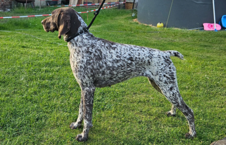 Die Kleinen wachsen bei uns im Familienumfeld auf, sind bestens sozialisiert und schon jetzt sehr menschenbezogen. Auf den Fotos könnt ihr einen ersten Eindruck gewinnen. Mutter: Dela von der Madlage , Zuchtbuch Nr. 0550 / 19 Braunschimmel mit brauen Kopf Derby 1 , ( Suche 4h , Vorstehen 4h) Suchensieger , AZP 1 stöbern mit Ente 4 , Fw SG 2 Jugendklasse , HD ( A2 ) , OCD - frei . Elegante Hündin des Mittelschlages mit einem Stockmaß von 59 cm. Sehr schön pigmentiert, schöner Hündinnenkopf mit gut getragenem Behang. Ober- und Unterlinie korrekt Vater: Enzo