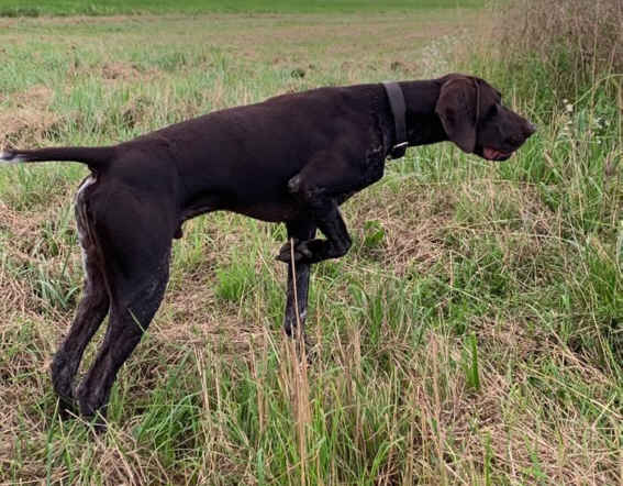 Ilay von Neuenbunnen ZB.-Nr. 0033/18, Brschl.m.br.K.u.Pl., Gew. 24.10.2017, Ilay ist ein Braunschimmel-Rüde vom großem Schlag (Stockmaß 68 ) mit leicht pigmentierter Brust. Bei der Zuchtschau (2.Platz) wurde er als ein eleganter Rüde mit trockenem Hals, perfektem Rüden Kopf und sehr gut getragenen Behängen beschrieben. Herausragend ist Ilay´s ausdauernde und doch führerbezogene Stöberarbeit. Die Wasserarbeit und Bringfreude ist seine große Passion. Außerdem arbeitet er sehr präzise und effizient bei der Beizjagd mit unseren Falken zusammen. Ilay ist sehr aufgeschlossen und sozialverträglich anderen Hunden gegenüber. Sein familien- und kinderfreundliches Wesen macht ihn für uns umso liebenswerter und unentbehrlicher in jeder Hinsicht. |