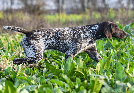 KS Rocky III von Neuarenberg ZBNr.: 0547/18 gew. 18.04.2018, Derby 1. Preis Nase und Vorstehen 4h, VJP 75 Punkte, Solms 1. Preis Nase 4h u. St.m.E. 4h, Andreasstern, HZP 190 P., VGP 334 P. 1.Preis St .o. E 4h, AH,LN,VBR, VSTP A (vom Stand) 68 P., Btr. ,SJ, SW1, HD-Frei A2, OCD und OD frei, Übergangswirbel frei, Formwert (JK) sg 3, FW: (AK) V1 Größe 65 cm (Für Niederlanden DNA, vWD Typ II – PCR, JEB, Willebrand frei) Rocky ist ein Forellenschimmel Rüde mit dkl.