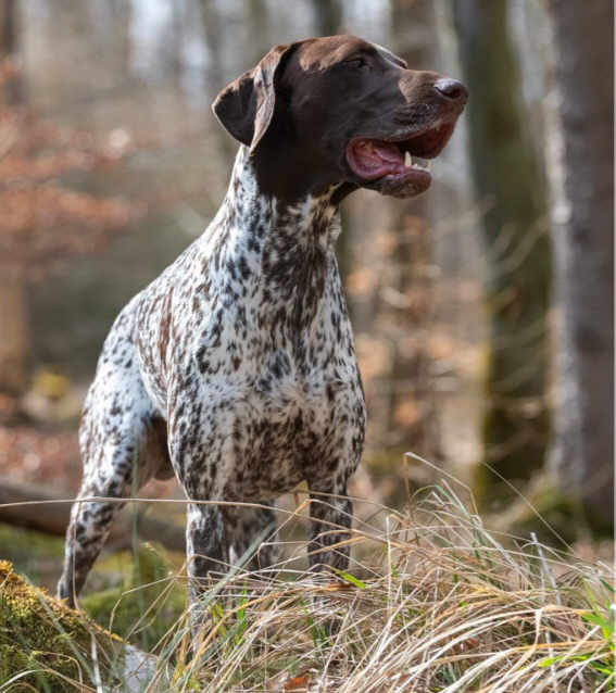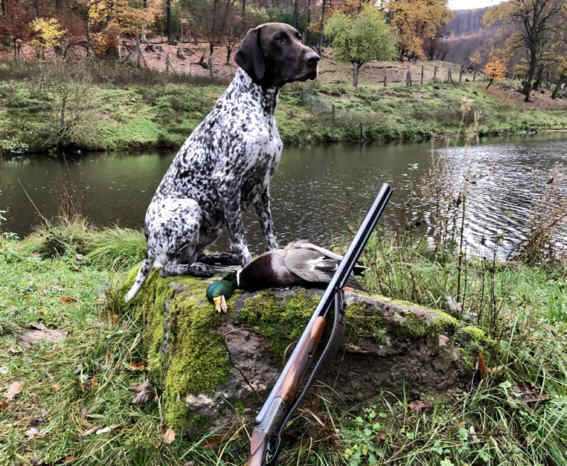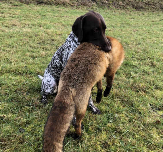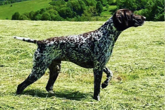 Bozo vom Odins Wald ZB.Nr 0644/19 gew. 12.04.2019 Forellenschimmel mit dkl. braunem Kopf D 1, S 2, AZP 1, SW 1, BTR, HN, BP, VGP1 333P., Formwert AK: 2xV, BOB, Größe 66cm, HD A1 Bozo ist ein edler, kräftiger und gut bemuskelter Rüde des Mittelschlags mit typischem Rüdenkopf, edler Ramsnase und dunklem Pigment. Er hat sehr gut angesetzte und getragene Behänge, eine korrekte Ober- und Unterlinie mit sehr guter Brusttiefe. Seine Rute ist ebenfalls sehr schön angesetzt und getragen. Bozo lebt als Familienmitglied im Haus und ist ein sehr ruhiger Zeitgenosse. Er liebt Kinder, ist sehr aufgeschlossen, problemlos und leichtführig. Gegenüber Artgenossen verhält er sich stets ruhig und vorbildlich. Im Feld zeigt er eine weiträumige Suche mit sehr gutem Naseneinsatz. Am Wasser ist er überaus motiviert mit großer Ausdauer und Finderwillen. Beim Raubwild jagt er sehr hart und kompromisslos, was er auch schon mehrmals am Waschbären unter Beweis gestellt hat. Auf der Rotfährte arbeitet er überaus ruhig und konzentriert. Bozo ist jetzt in Vorbereitung auf die VGP. |