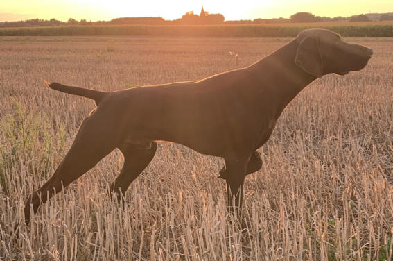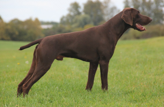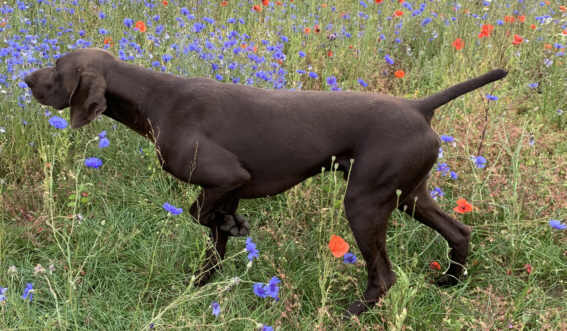 Dyke vom Schätzeberg ZB. Nr. 0670/18 Br. m. Brfl. gew. 27.04.2018 Formwert sg 1, Landesjugendsieger 2019, Zuchtschau 2020 Klub DK Nordwest V1, Zuchtschau 2020 DK Havelland V1, HD A1, Stockmaß 66 cm Dyke ist ein hocheleganter Rüde mit sehr schönem dunkelbraunem Pigment, kraftvoller Ausstrahlung, sehr schönem Rüdenkopf, vorzüglicher Ober- und Unterlinie, sehr langes Brustbein, mit sehr guter Aufrichtung und sehr guter Vorbrust. Behänge korrekt angesetzt und getragen. In der Bewegung harmonisch und fehlerfrei. Dieser außergewöhnlich nervenstarke und wesensfeste Rüde, überzeugt durch absolute Härte und Ausdauer im Wasser, kein Schilf ist ihm zu dicht. Sein ausgeprägter Finderwille und seine Führigkeit gepaart mit exzellenten Feldmanieren lassen jede Niederwildjagd zu einem eindrucksvollen Erlebnis werden. In unserem Hochwildrevier und auf Drückjagden arbeitet Dyke außergewöhnlich selbstbewusst an Schwarzwild und überzeugt durch kompromisslose Schärfe gegenüber jeglichem Raubwild. Hervorzuheben ist sein freundliches Verhalten gegenüber Kindern und Erwachsenen. Dyke lebt mit mehreren Rüden verschiedener Rassen harmonisch zusammen. Dyke hat bereits erfolgreich für Nachwuchs gesorgt. |