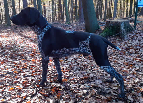 Der Rüde steht als Diensthund in einem großen bayerischen Forstrevier