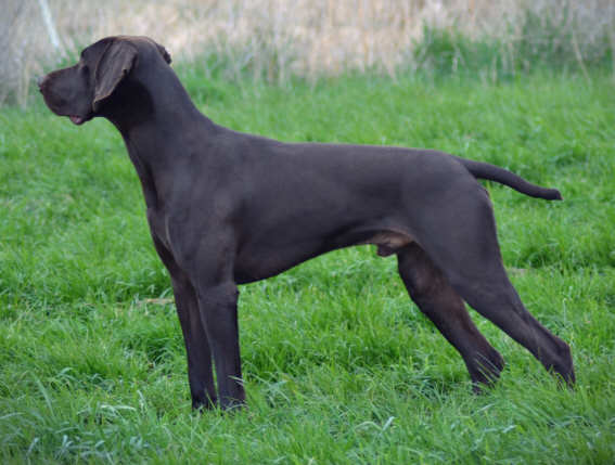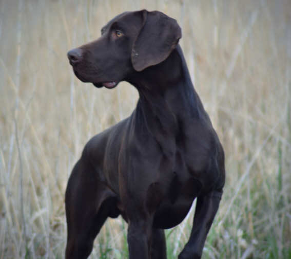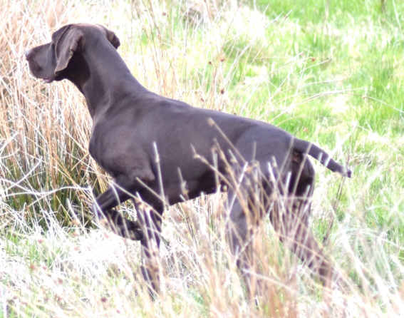 Heinrich vom Sauwerder gew. 13.05.2017 ZB.NR. 0926/17, Br. VJP 76 Pkt (12 Punkte Spurarbeit; spurlaut), LN (spurlaut, sichtlaut), D1, HZP 187 Pkt, S1, VGP3 300Pkt, HN, Fw: V1, SG1 (Sieger Jugendklasse), HD A2 Heinrich ist ein kräftig pigmentierter Rüde mit passenden Proportionen und großer Ausstrahlung. Er kommt ganz nach seiner Mutter Anka KS vom Sauwerder. Er hat ihren hervorragenden Spurlaut (8 Geschwistern wurde ebenfalls der Spurlaut bestätigt), ihre außergewöhnlichen Stöberhundqualitäten, ihren absoluten Durchhaltewillen gerade auch im Wasser und ihre tollen Feldmanieren geerbt. Drei Schwestern von Heinrich sind auch schon zuchttauglich. Alle 3 haben eine A1- Hüfte! Seine bisherige Entwicklung ist sehr Beachtlich und es macht eine große Freude, ihn bei der Arbeit zuzusehen. Damit Sie eine bessere Übersicht über diesen ausdrucksstarken Rüden bekommen können, möchte ich Ihnen gerne seinem bisherigen Werdegang schildern. Mit 4 Monaten hat er schon große Wasserfreude entwickelt und einen Monat später das erste mal Spurlaut gezeigt. Auf der VJP hat er 12 Punkte für die Spurarbeitet bekommen, weil er unter anderem auf den Hasenspuren der Vorgänger die gleiche Passion und den gleichen Finderwillen gezeigt hat, wie auf einer frischen Spur und das jedes mal mit Spurlaut. Seine hervorragende Leistung wurde beim Derby zwei Wochen später mit einem 1. Preis bestätigt. Die Vorbereitung zur HZP war mit Heinrich ein Kinderspiel, weil er ein sehr hohes Auffassungsvermögen gepaart mit großer Arbeitsfreude hat. Die Hundeführer seiner Mitstreiter haben ihn Respektvoll "Streberheini" genannt. Wenn die Aufgaben beim Training zu leicht waren, musste Heinrich die verlorenen Enten und Dummys der anderen Teilnehmer aus dem Wasser holen, wenn diese nicht gefunden wurden. Auf der Zuchtschau DK Oderland wurder er im Alter von 13 Monaten Sieger der Jugendklasse und war dank der positiven Ausstrahlung, der heimliche Star der Zuschauer. Die HZP (187 Pkt.) hat Heinrich mit bravour bestanden und die Leistung wurde auf der Solms eine Woche später mit einem 1. Preis bestätigt. Nach den tollen Zuchtprüfungen wurde Heinrich voll zur Jagd eingesetzt. Das Ziel war immer, einen Hund für die Jagd zu haben und nicht für Prüfungen. Darum sollte dieser Rüde nach den Prüfungen Erfahrungen sammeln. Er hat auf den Jagden (Wasser, Feld und Wald) hervorragende Leistungen erbracht. Auch auf dem Wasser zeigt er unheimliche Passion. Kein Schilf lässt er aus. Sein Durchhaltewillen ist beeindruckend, er würde niemals von alleine aufhören zu suchen. Diese 3. Jagderlebnisse mit dem noch jungen (>18 Monate) Heinrich möchte ich gerne mit Ihnen teilen, denn diese sagen viel mehr über einen Jagdhund aus, als jede Beschreibung. - Auf seiner ersten Drückjagd, hat er gleich zum Anfang des Treibens Spurlaut gezeigt, als die anderen Hunde noch nicht "wach" waren. Meine Mitstreiter meinten, dass der "junge" Hund nur eine Spur von einem Nutria folgt und einen Moment später hat Heinrich einen kapitalen Keiler aus dem Schilf gedrückt. - Auf einer Drückjagd hat er einen kranken Rehbock (Laufschuss) verfolgt und an der Kehle runtergezogen, bis ein Jäger den Bock erlösen konnte. Seine Kompromisslose Wildschärfe war phänomenal und er hat großes Leid und eine lange Nachsuche verhindert. Die Jagdgesellschaft hat nach dem Treiben, mehr als nur einmal, auf den jungen Heinrich angestoßen. - Auf seiner ersten Treibjagd hat sich Heinrich von der Treiberwehr überlaufen lassen und blieb hinten. Alle hatten sich gewundert, was der Hund hinter der Treiberwehr macht. Kurz danach hat er einen "überstiegenen" Hasen aus einen Graben getrieben und direkt zu der Treiberwehr gebracht, der anschließend sicher erlegt werden konnte. Heinrich ist sozial verträglich und lebt mit einen nicht kastrierten Vizslarüden zusammen. Zuhause ist er völlig entspannt und liebt es, nah bei seinen Menschen zu sein. |