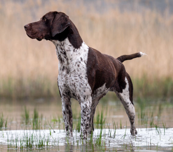P. 336 P./ÜF, Bringselverweiser, VBR BP Amigo ist ein kompakter, leistungsstarker, eleganter Rüde des Mittelschlages (65 cm Stockmaß). Er besticht durch sein dunkles Pigment und sein angenehmes Wesen. Er ist freundlich und stressfrei gegenüber Artgenossen und zeigt außergewöhnlichen Lernbereitschaft. Bereits im ersten Prüfungsjahr konnte er tadellose Leistungen abliefern und zum Höhepunkt die VGP bestehen. Wie auch sein Vater Jester KS Anjules sowie sein Großvater Dexter KS von der Königsleite, zeigt er tolle Leistungen im Wasser. Anlässlich der Solms konnte Amigo dies zeigen und erhielt im Fach Stöbern mit Ente ein verdientes "h". Er wird zwischenzeitlich auf Enten- und Treibjagden eingesetzt und zeigt Ausdauer, Finderwillen sowie tolle Vorstehmanieren. Besonders hervorzuheben ist die ruhige und konzentrierte Arbeit bei der Schweißarbeit. An Raubwild ist er kompromisslos und intelligent und im Gegenzug liebevoll und unkompliziert in der Familie. Ich würde Amigo als "coole Socke" bezeichnen!